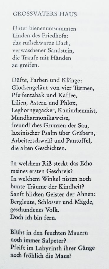 Was er dann "offschreibt" - in Hochdeutsch oder in seinem heimatlichen Dialekt - zeigt: er schaut genau hin, sieht Zusammenhänge, Hintergründe, bleibt keinesfalls stehen beim Hier und Jetzt, interessiert und begeistert sich für die Welt da draußen ebenso wie für das, was vor Zeiten geschah, gedacht, aufgeschrieben wurde.